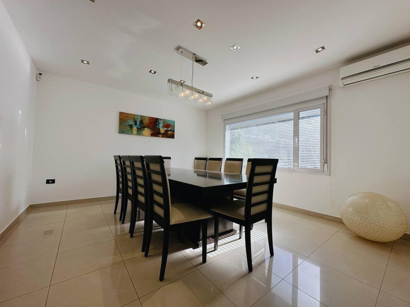 10 año/s de antigüedad 290 m² de superficie cubierta 210 m² de superficie total 3 dormitorio/s 5 ambientes / espacios Dormitorio en suite Comedor diario 3 baño/s completo/s Jardín al frente Calefacción Losa Radiante Aire acondicionado Split/Ventana Agua caliente Caldera Alarma de seguridad Parrilla Hidromasaje Piscina 2 Garage cubierto